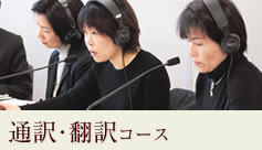 国際会議での経験豊かな通訳者による講義演習に加え、各分野の専門家が日英両言語で講義を行い、会議および企業内での質の高い通訳・翻訳者と通訳研究者を養成。また、通訳現場で実践体験を積むOJT(On the Job Training)の機会も設けています。翻訳においても実践力の陶冶を目指し、実際に出版を目指した翻訳のOJTを行っています。社会人が受講しやすいよう、開講時間帯は、平日夜間及び土曜日で、遠隔履修も可能です。